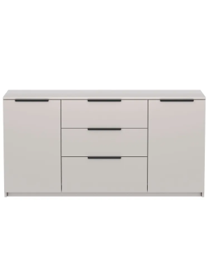 Наполнение: 3 выдвижных ящика + 2 распашные дверцы. За дверками расположено по 2 полки.