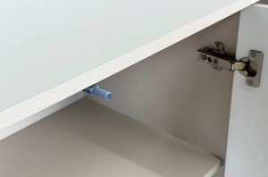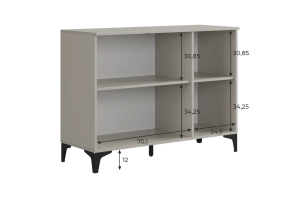 Дверцы комода выполнены из МДФ с фрезеровкой и скрывают за собой просторное хранилище для различных вещей.