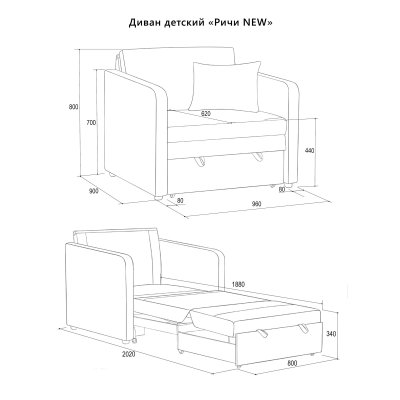 Спальное место: 88х188 см