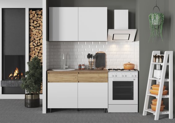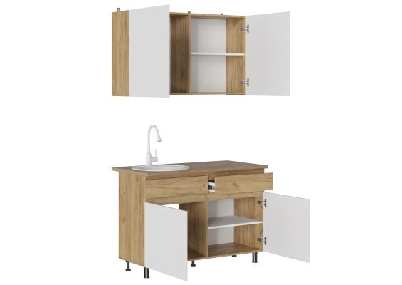 - 1 навесной шкаф (1200 × 704 × 286 мм) с полками и местом для посудосушителя (приобретается отдельно).