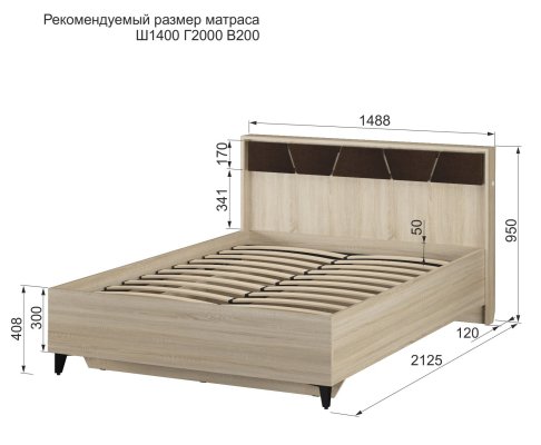 Кровать со спальным местом 140х200 см: