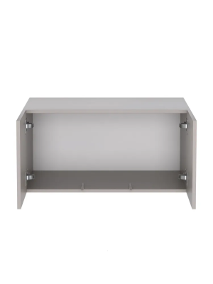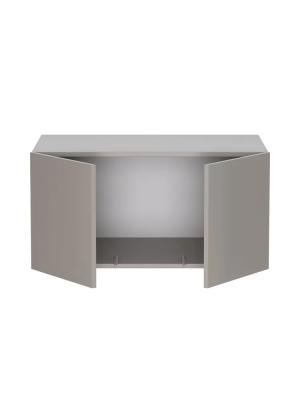 Антресоль для шкафа имеет две дверцы, открывающиеся в стороны. За ними расположено место для хранения вещей (одежды, постельного белья или принадлежностей). Обе дверцы открываются с помощью механизма от нажатия (push to open). Дверцы с доводчиками, оборудованы соответствующими накладными и полунакладными петлями.