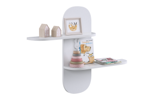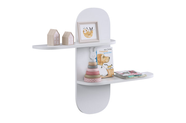 Полка выполнена из ЛДСП, что обеспечивает прочность и надёжность конструкции. Модель оснащена двумя открытыми полками, на которых удобно разместить книги, игрушки, декоративные элементы или учебные принадлежности. Открытый формат делает нужные вещи всегда доступными и визуально не перегружает пространство.