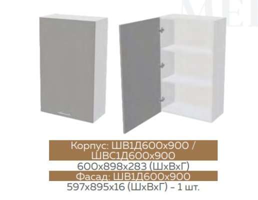 ШВ1Д600/900 Шкаф верхний (Белый снег софт)