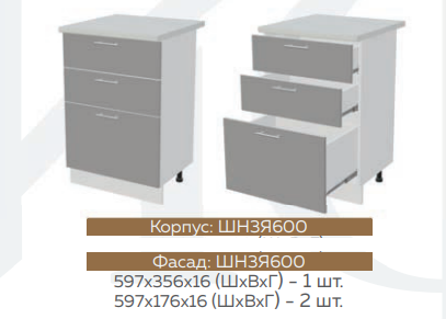 ШН3Я600 Шкаф нижний (Графит софт NEW)