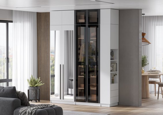 Лицевая фурнитура отсутствует. На фасадах установлена система открывания PUSH-TO-OPEN.