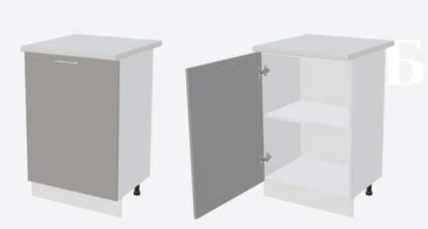 Глубина нижних шкафов без учета столешницы: 444 мм, с учетом столешницы 600 мм