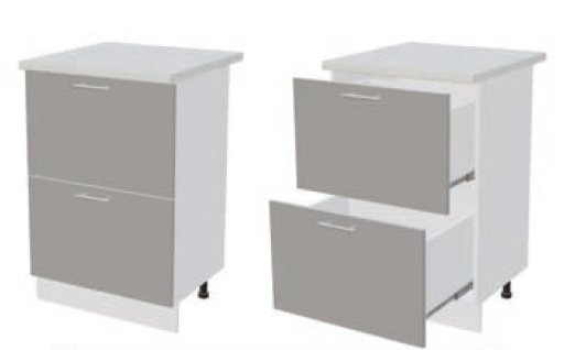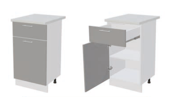 Глубина нижних шкафов без учета столешницы: 444 мм, с учетом столешницы 600 мм