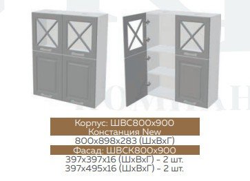 ШВСР800/900 Шкаф верхний со стеклом-решеткой H900 мм